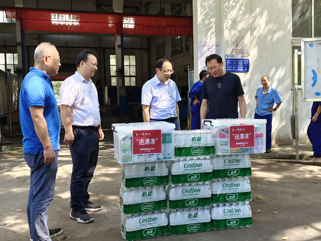 7月28日,宜昌市高新区总工会主席刘钧顺代表高新区总工会到机械公司开展“送清凉”活动,看望慰问了车间一线员工,为他们送来了清凉饮品及藿香正气水等防暑降温物资,并叮嘱公司要做好防暑降温措施,合理安排作息时间,将防暑降温和安全保障措施落实到每个人,坚决杜绝安全事故的发生。