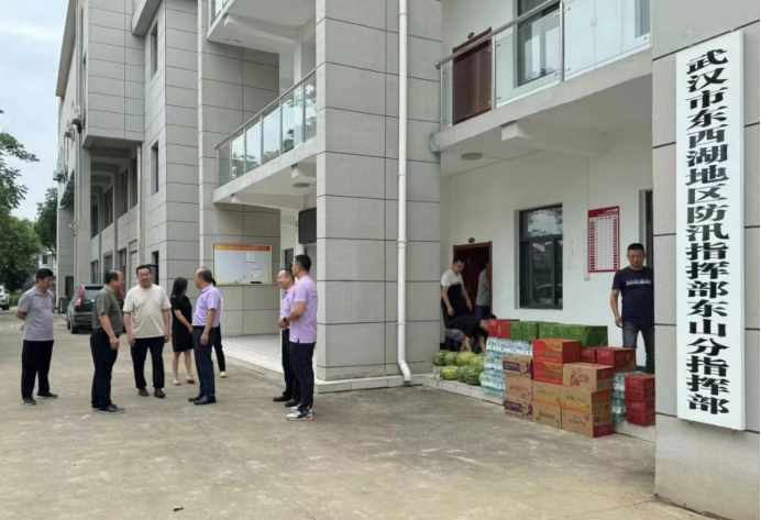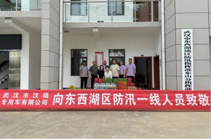汉福公司为他们送去饮用水、方便面、西瓜等50余件物资,以实际行到表达对防汛一线工作人员的敬意和支持,助力府河防汛抗洪,展现东西湖企业的责任与担当。