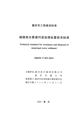 为规范重庆市城镇排水管渠污泥处理处置,科学规划建设排水管渠污泥处理处置工程,提高排水系统运维水平,改善和保护环境,促进资源化利用,经广泛调查研究,总结重庆市实践经验,参考国家及重庆市有关标准,在广泛征求意见的基础上,由重庆设计集团有限公司和重庆市交通大学共同主持编制,三川科技公司参与编制并提供技术支持的《城镇排水管渠污泥处理处置技术标准》(DBJ50/T-492-2024)于2024年12月1日起施行。