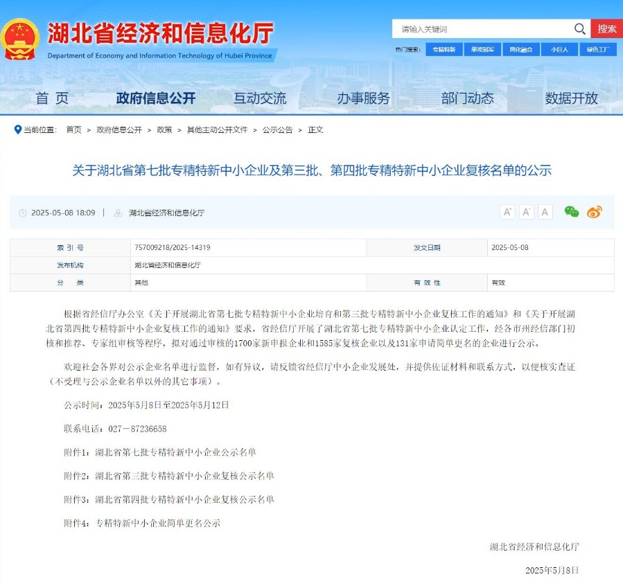 近日,公司凭借在技术创新、市场表现及专业化发展等方面的卓越表现,顺利通过省经信厅的严格复核。