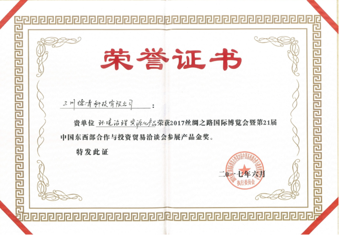 “环境治理资源化产品”荣获2017丝博会参展产品金奖