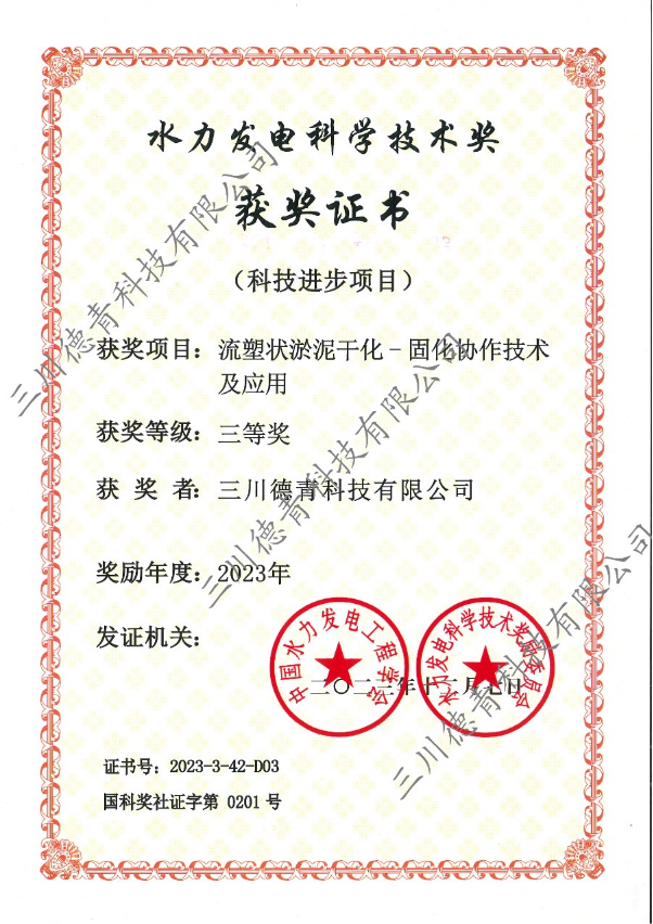 由开云手机客户端中国有限公司与三峡大学联合申报的“流塑状淤泥干化—固化协作技术及应用”项目,获得中国水利发电工程学会2023年水力发电科学技术(科技进步项目)三等奖。