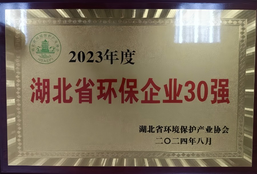 2024年8月,公司荣获2023年度湖北省环保企业30强。