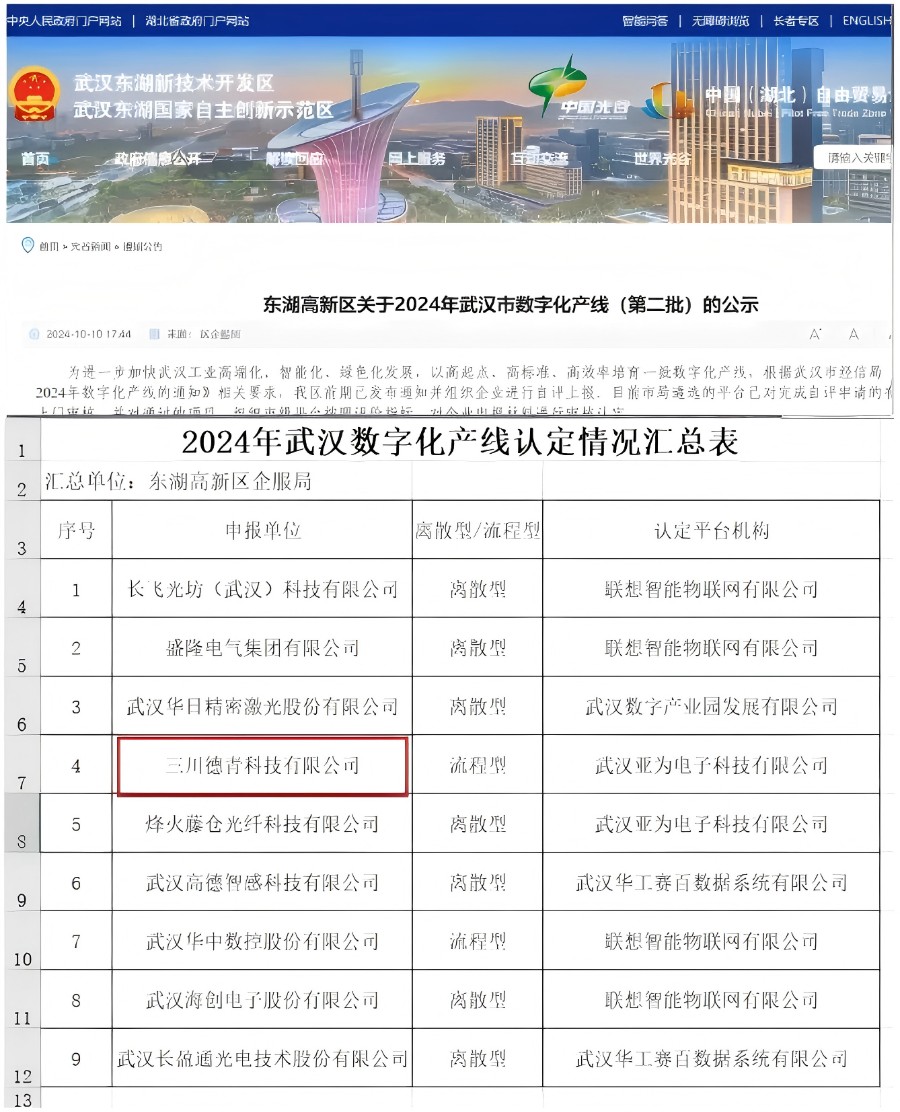 由公司申报的2024年度武汉数字化产线获批,成为了第二批公示单位之一。