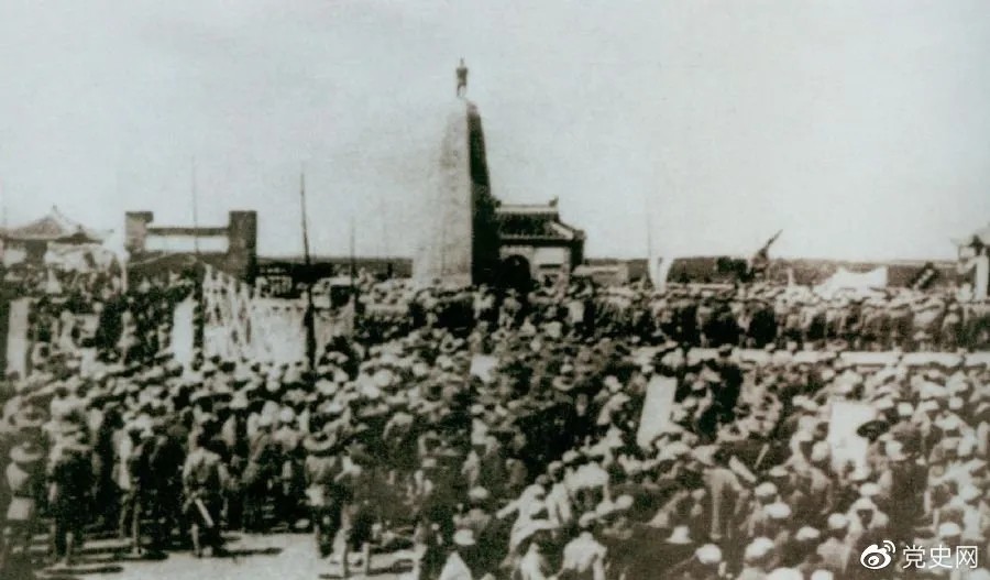 1931年6月,红七军到达中央革命根据地江西兴国县,编入彭德怀率领的红三军团。图为当时会师的情形。